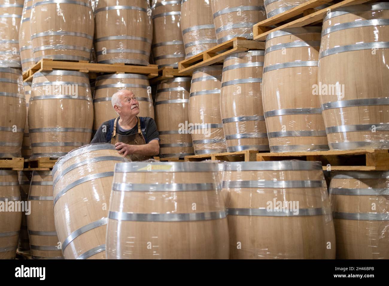 Produktion 11 Oktober 2021 Bayern Eussenheim Karl Assmann Von Der Buttnerei Assmann Steht Im Fasslager Foto Daniel Karmann Dpa Stockfotografie Alamy