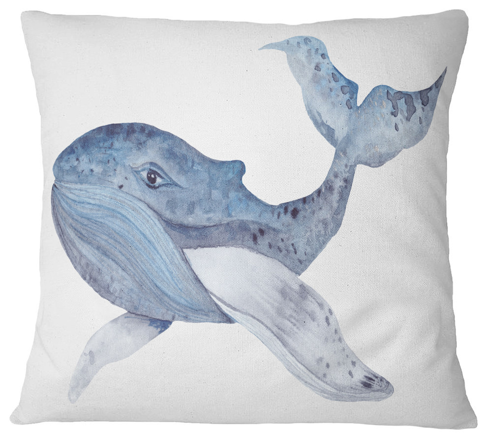 Large Watercolor Whale Animal Throw Pillow Beach Style Decorative Pillows By Designart Inc Houzz